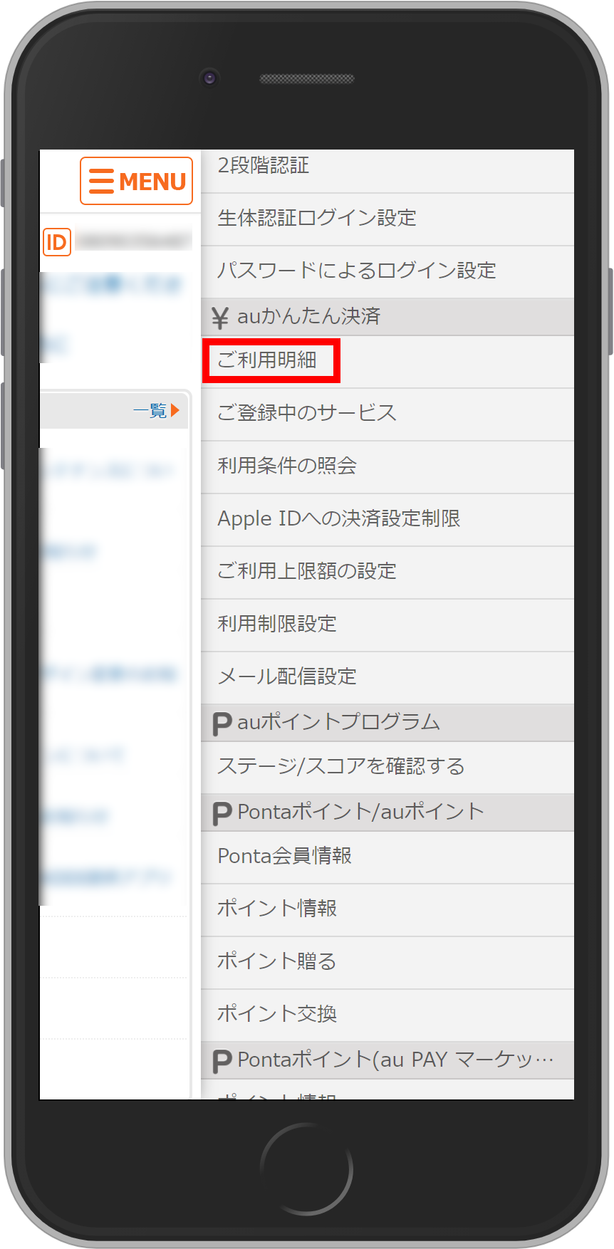 ③[ご利用明細]をタップ