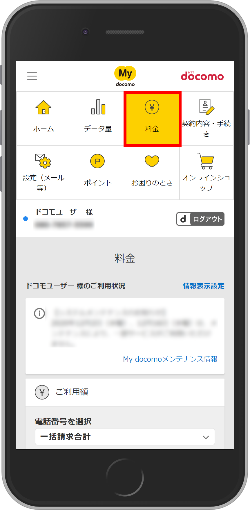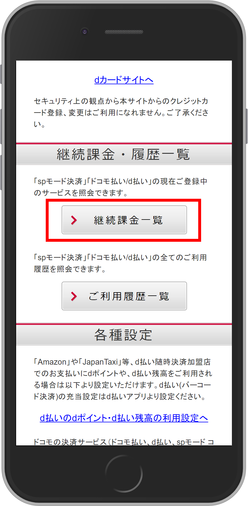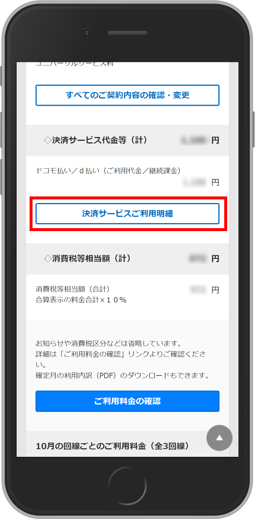 ③ページ中盤・[決済サービスご利用明細]をタップ
