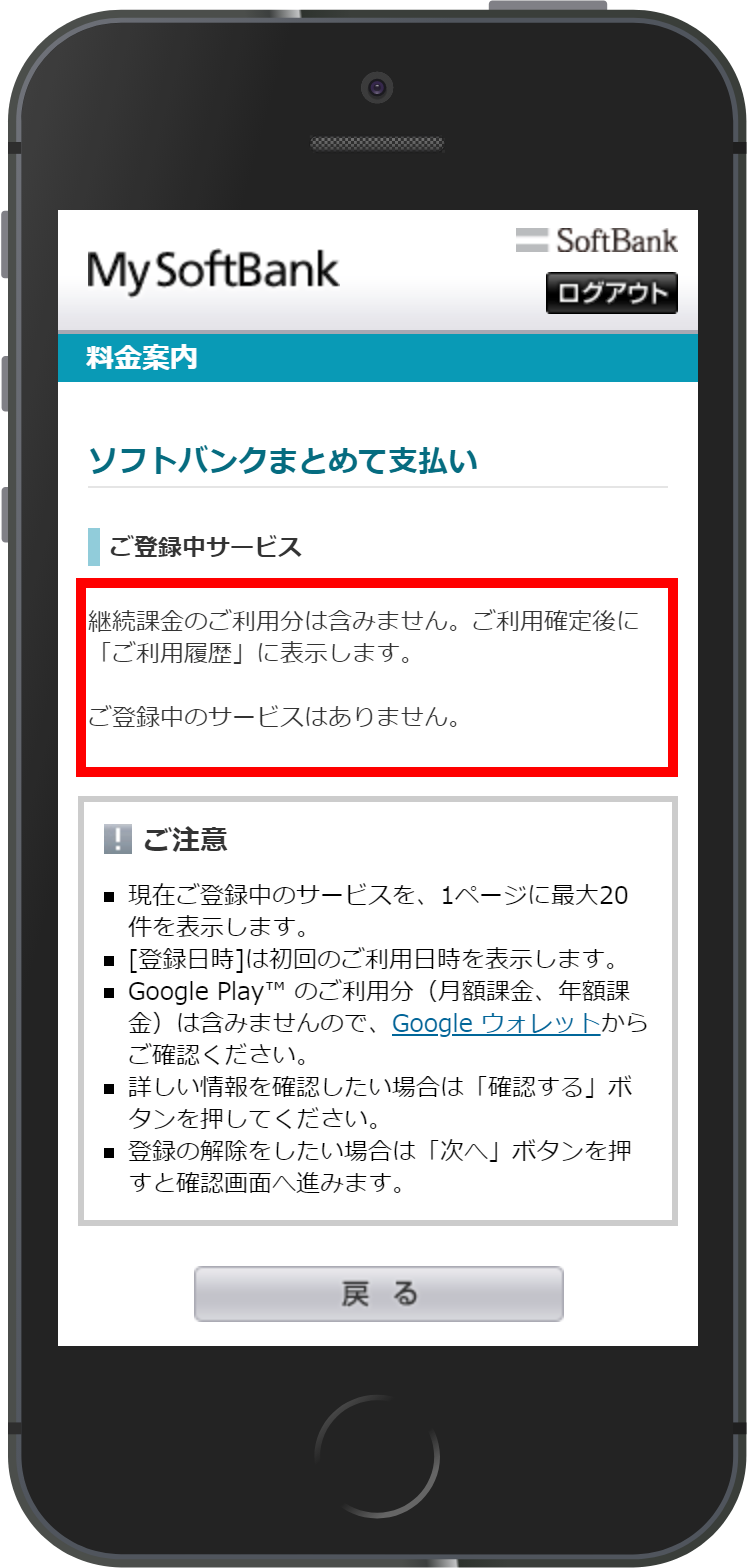 ※SoftBank(A)ご登録中サービスに表記されなければ解除済みとなります